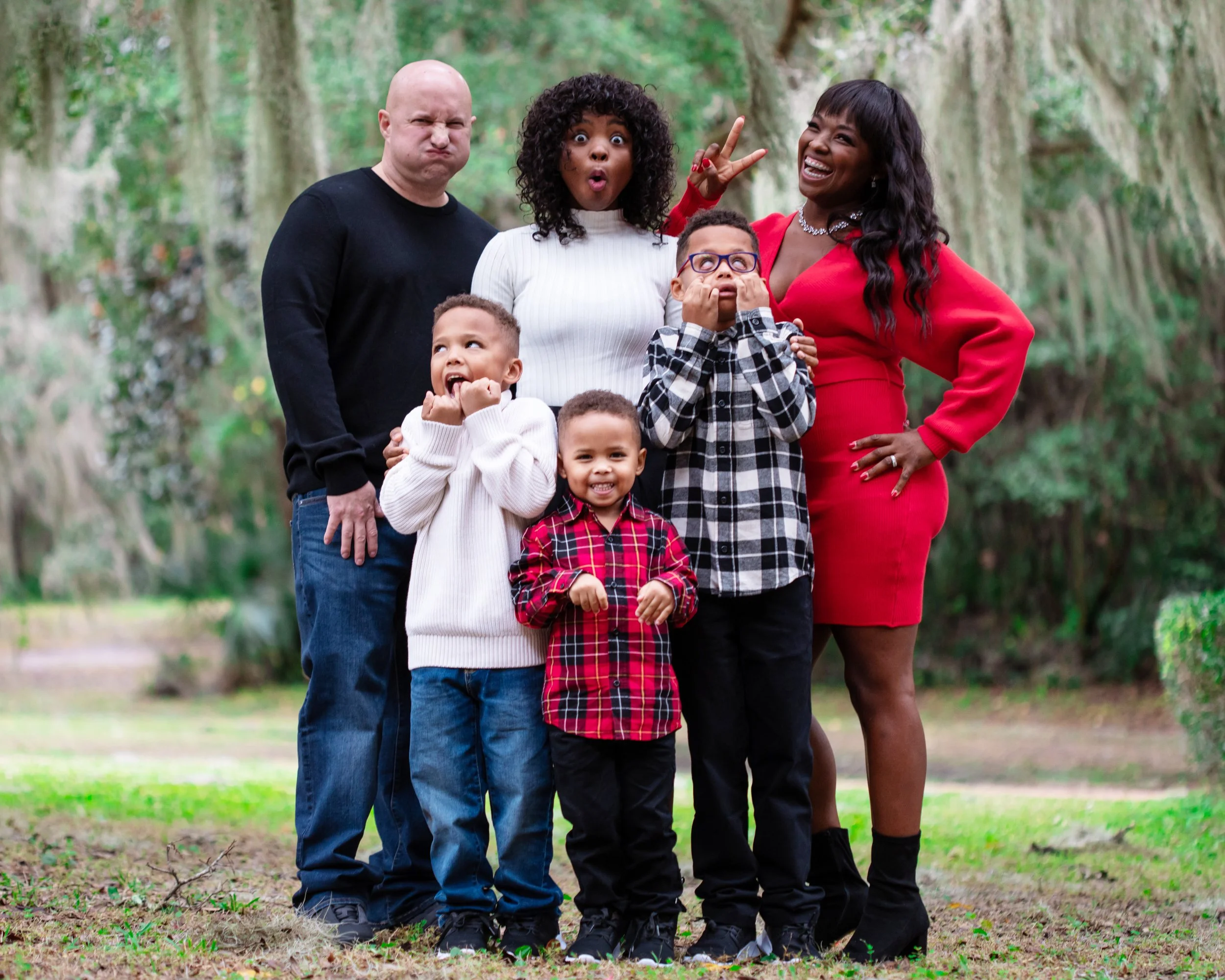 Draped in the delicate veil of Spanish moss, a family gathers beneath glistening branches, the fresh scent of rain lingering in the air as they embrace the quiet beauty of the post-storm glow.